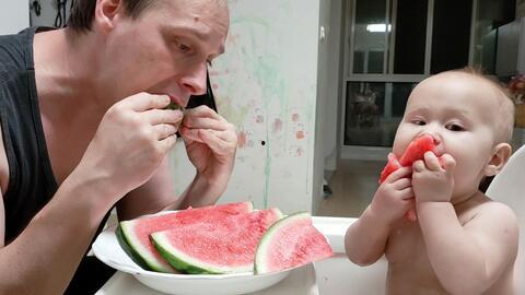 一、瓜界新秀:父母抢孩子吃瓜